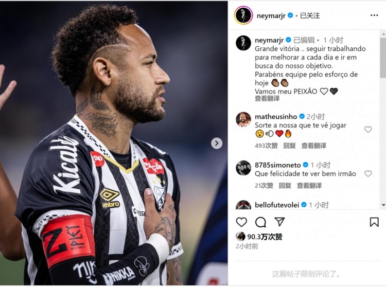 内马尔社媒庆祝取胜:重要的胜利,继续努力朝着目标前进