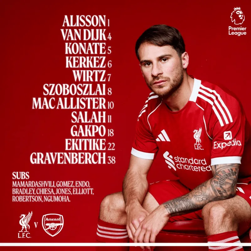 替补:马马达什维利、戈麦斯、远藤航、布拉德利、基耶萨、琼斯、埃利奥特、罗伯逊、恩古莫哈。