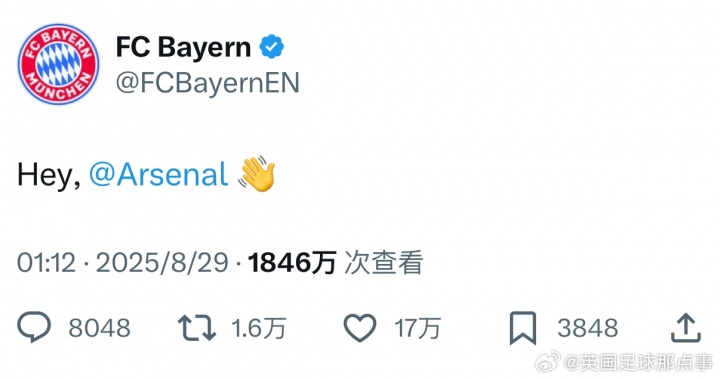九游体育官方网站-欧冠抽签揭晓后,拜仁官方推特单独向阿森纳致意